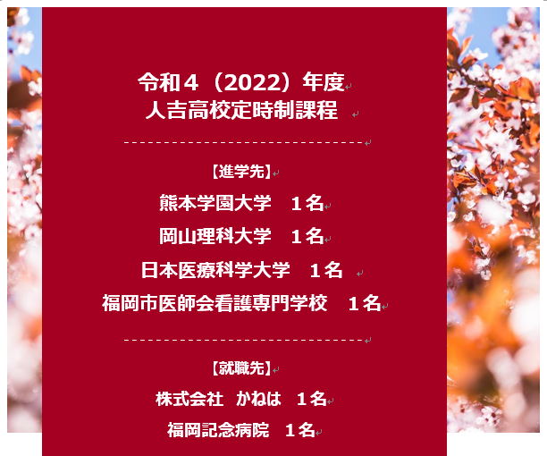 【定時制】令和4年3月卒業生の進路情報(令和4年4月8日掲載)