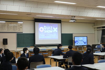 オリエンテーションの後、在校生と新入生の対面式を行い、生徒会企画による新入生歓迎行事を開催しました。いじめゼロ宣言の後、クイズ大会等で盛り上がり、親睦を深めました。