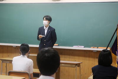 12日(日)に開催される熊本県高等学校定時制通信制総合体育大会に向けて結団式を行いました。卓球部・バドミントン部の各代表が部活動紹介を行った後、卓球部主将で生徒会長の川瀬さんが選手代表宣誓を行い、生徒全員で互いに健闘を誓い合いました。