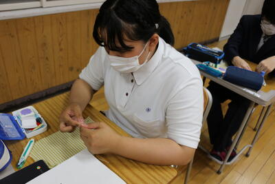 授業風景(2年家庭 被服実習「手縫い」)(6月8日)