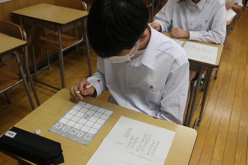 読み上げられた人の名前をで囲み、BINGOを目指していく楽しいLHRの時間でした。