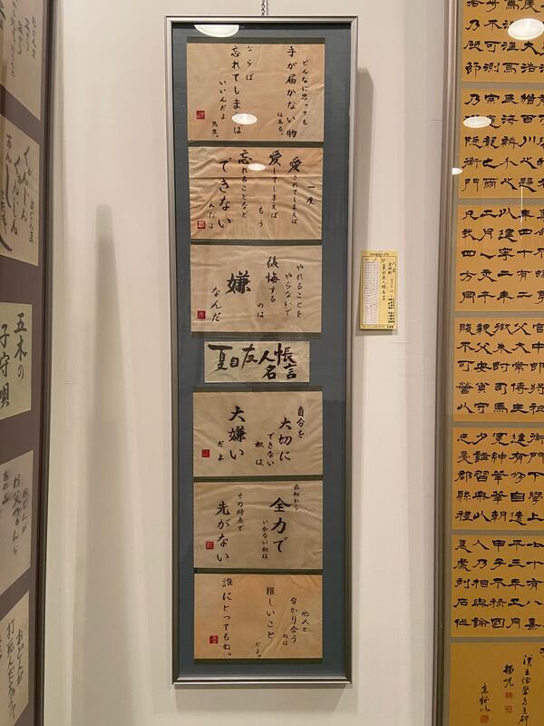 県立劇場で開催された総文祭書道部門に人定2年生6名(大河内・大坪・鮫島・高橋・西・平川)の合作作品を出品しました。「人吉球磨」にゆかりのある「夏目友人帳」の「名言」を「書」で創作しました。「裏打ち」「額装」も自分たちの手作業で、それぞれに“味”のある作品に仕上がりました。