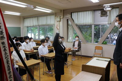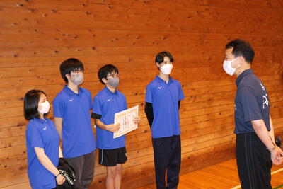 12日(日)に開催される熊本県高等学校定時制通信制総合体育大会に向けて結団式を行いました。卓球部・バドミントン部の各代表が部活動紹介を行った後、卓球部主将で生徒会長の川瀬さんが選手代表宣誓を行い、生徒全員で互いに健闘を誓い合いました。