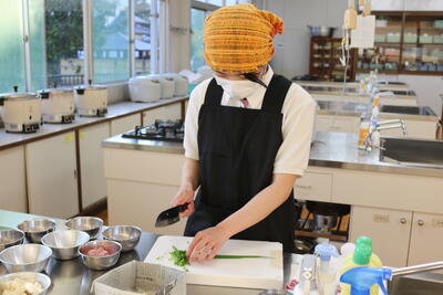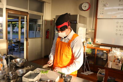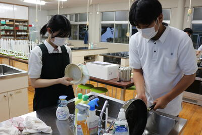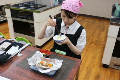 3年生の調理実習の授業です。おいしい麻婆丼ができあがりました。