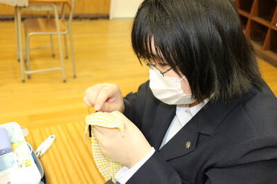 授業風景(2年家庭 被服実習「手縫い」)(6月8日)