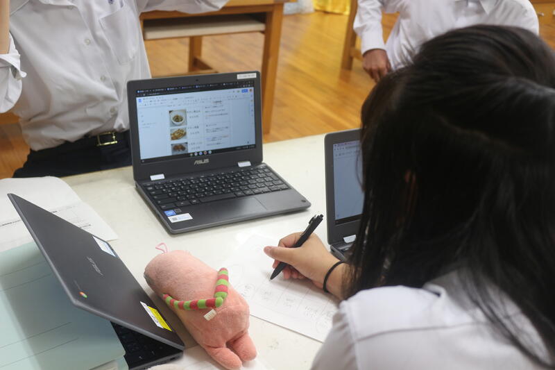 普段からあまり料理をせず戸惑っている生徒もいましたが、クラスメイト同士声を掛け合い、助け合いながら実習に臨んでいました。