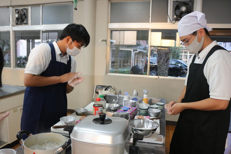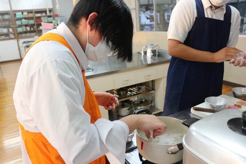 普段からあまり料理をせず戸惑っている生徒もいましたが、クラスメイト同士声を掛け合い、助け合いながら実習に臨んでいました。