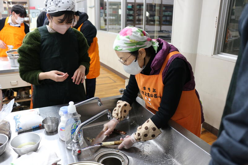 くまもとふるさと「食の名人」の牧山先生、鶴田先生を講師としてお招きし、人吉球磨の郷土料理を教えていただきました。
