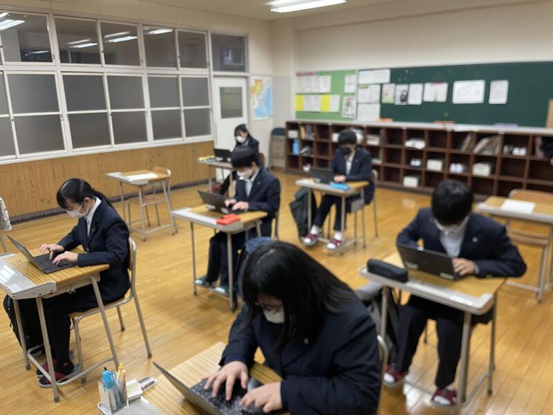冬季休業直前、2年生のタイピング大会が行われました。1人1台端末ChromeBookを活用した取組で、生徒たちは全員真剣な表情で大会に臨んでいました。