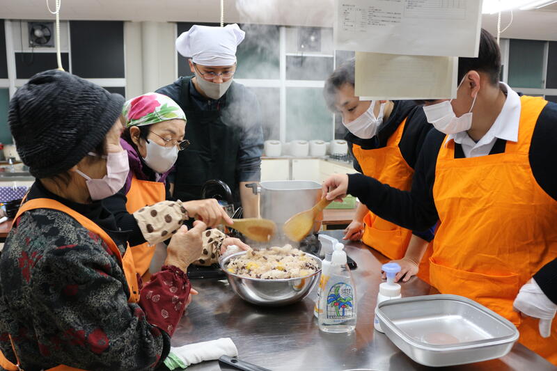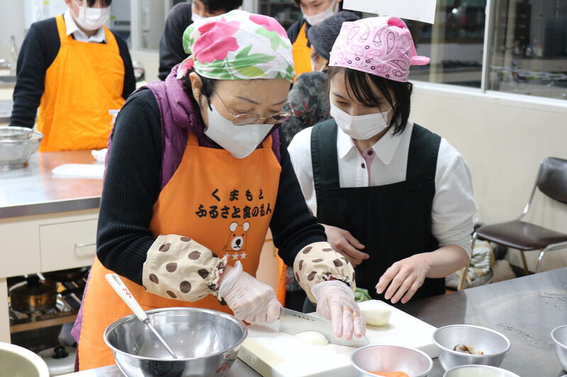 くまもとふるさと「食の名人」の牧山先生、鶴田先生を講師としてお招きし、人吉球磨の郷土料理を教えていただきました。