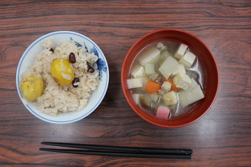 栗入り赤飯の栗は、講師の牧山先生の自宅で栽培・収穫されたもので、炊きあがった赤飯の栗はとてもほくほくしていて甘味がありました。