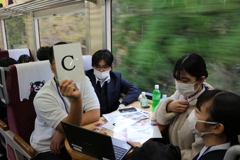 佐敷駅~水俣駅までは、生徒会主催のおれんじ鉄道などに関するクイズ大会が行われました。