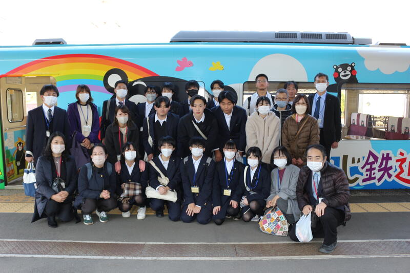 普段の開始時間よりも早い12時30分に学校に集合し、バスで八代駅へ向かいました。
