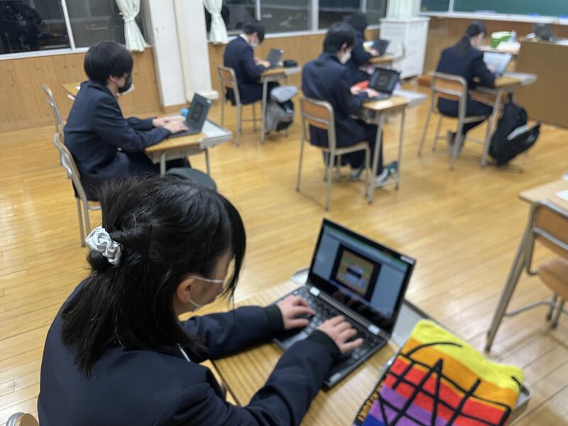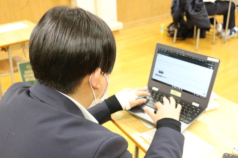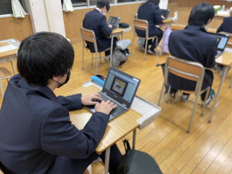冬季休業直前、2年生のタイピング大会が行われました。1人1台端末ChromeBookを活用した取組で、生徒たちは全員真剣な表情で大会に臨んでいました。
