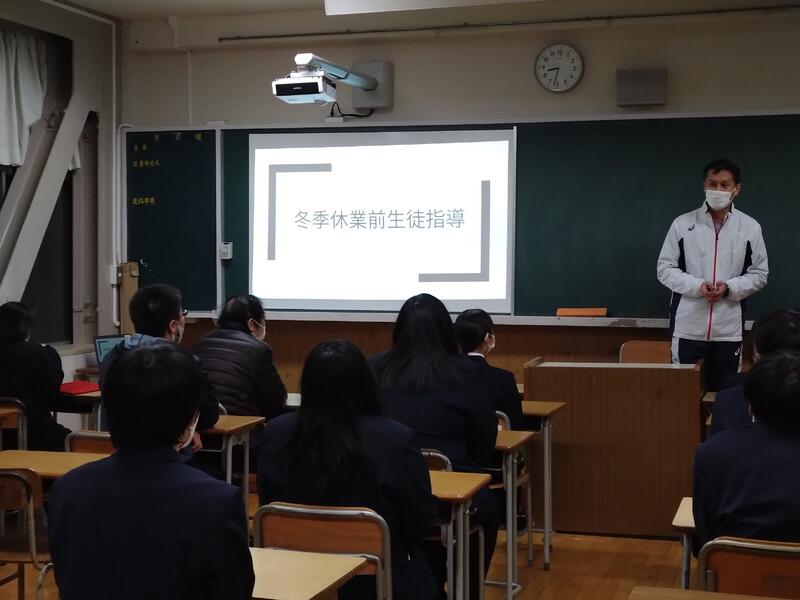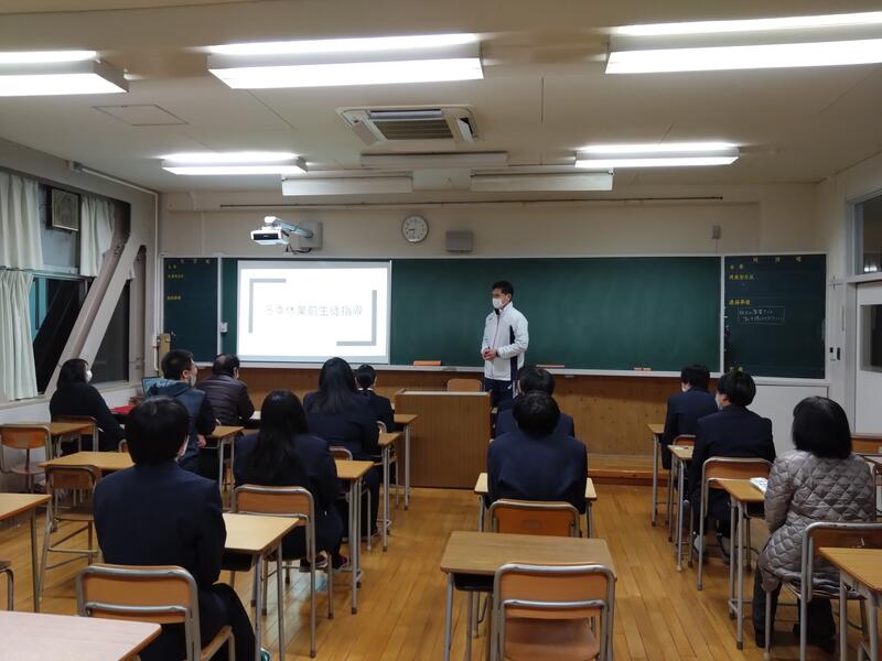 授業後の合同終礼で冬季休業前の諸連絡があり、年末年始の過ごし方等について確認しました。