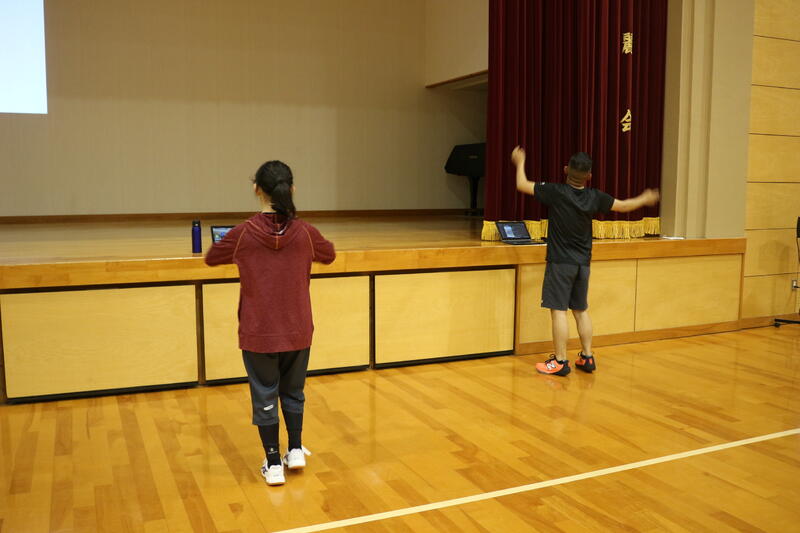 体育の授業では、2~3人に分かれてダンスをしています。