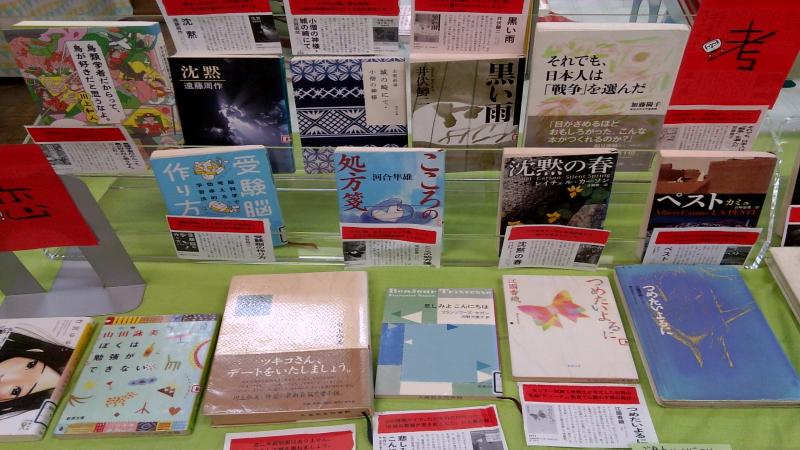 新潮文庫から届いた「高校生に読んでほしい50冊」という冊子を利用して展示を作りました。