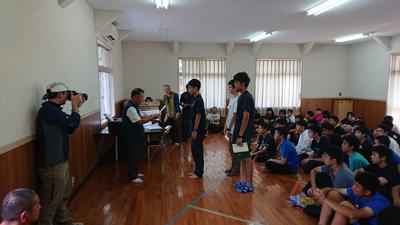 11日(日)に杵島岳で行われる「山の日」記念イベント参加も兼ねて、夏合宿を阿蘇山系で行いました。当初、10日(土)は烏帽子岳に登り坊中のキャンプ場に幕営する予定でしたが、火山灰が北へ向かって激しく流れ降り、真っ白の状態で、とても幕営はできそうになく、急遽南阿蘇にキャンプ地を探しました。結果、くぎのキャンプ場隣の熊本清陵高校グラウンドが無償で借りれて、幕営しました。今回の合宿は、4チームに分け、読図力、テント設営技術、食事メニュー&味、行動技術、植生などを競いました。優秀なチームには、顧問がポケットマネーで購入した賞品が与えられました。新チームの1年生・2年生の親睦も深まる、楽しい合宿となりました。ちなみに、F先生の賞品は、スプーン・フォークセット、H先生の賞品は、マグカップでした。お菓子をもらったチームもいました。