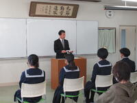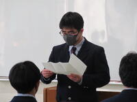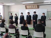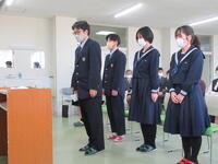 春先うららかな季節を迎えたこの良き日に、私たち新入寮生6名のために、このように厳粛な雰囲気の中で、入寮式を開いていただき、誠にありがとうございます。また、両校の校長先生をはじめとして、多くの先生方や先輩型に温かく迎えていただき、大変うれしく思っています。