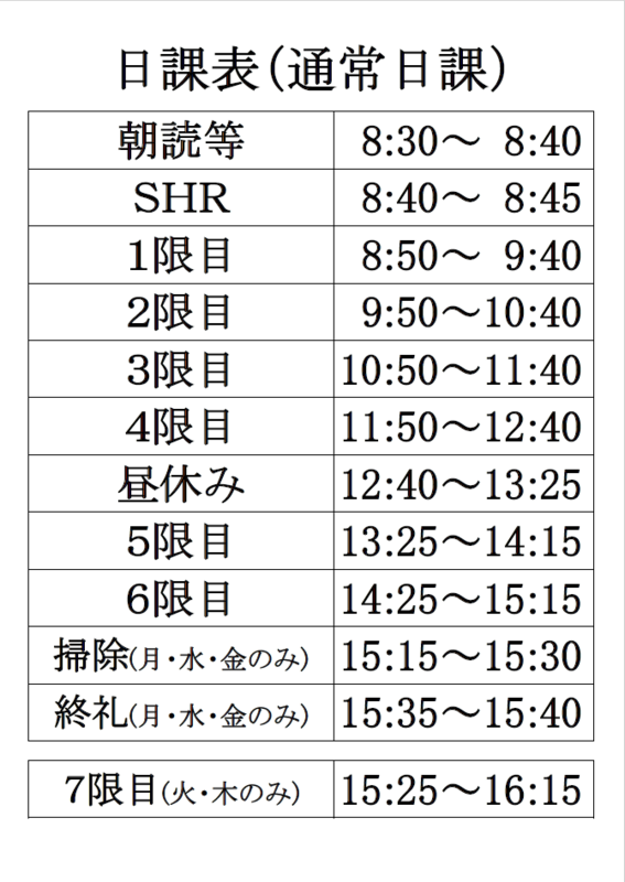 ただし、3年生の高校総文総体後の放課後課外、全学年の夏季・冬季休業中の課外は除きます。
