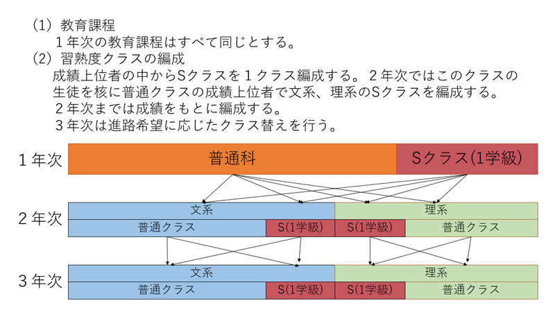 成績上位者を1クラスに集めることにより、レベルの高い授業をすることで、人吉高校の学習面のリーダーとなる高い学力をつけることを目的としています。将来的には、学力的に難関と言われるあらゆる進路に十分対応できるようにしています。