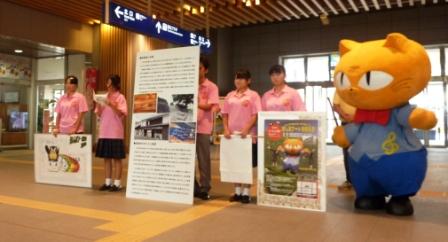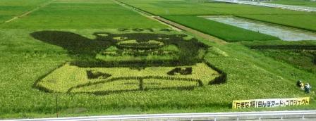 2014 田んぼアート鑑賞会 投稿日時 : 2014/08/06 HRBT2016 8月1日(金)新玉名駅で田んぼアート鑑賞会が行われました。鑑賞会では、農業クラブ田んぼアート班が参加し、今年の田んぼアートの見どころと田植えまでの経過報告を報道関係者に行いました。また、2014田んぼアートの展望所である新玉名駅2階の下り線ホーム待合室に、来客者向けに田んぼアートの説明パネルを置き、田んぼアートの魅力を発信することにしました。できあがったパネルを駅長さんに手渡し、早速設置していただきました。G01