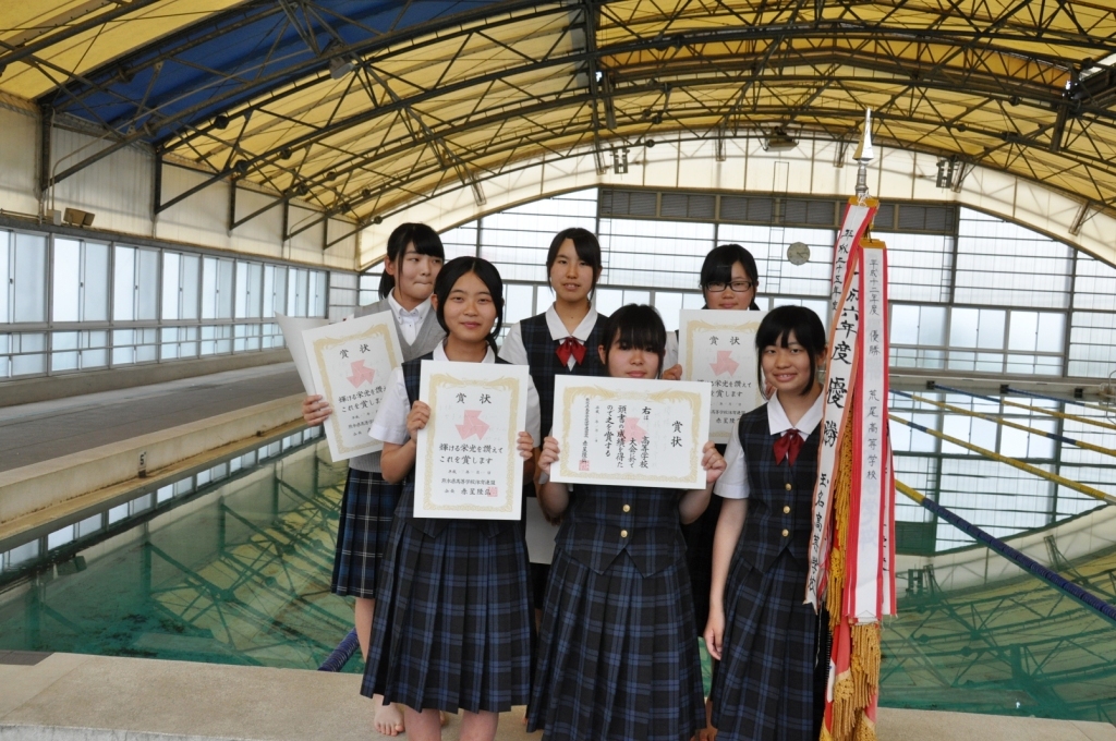 【成績】 平成27年度熊本県高校総合体育大会 男子 100m自由形/50m自由形出場 女子 100m自由形/50m自由形/100m平泳ぎ 400mメドレーリレー出場 平成27年度荒尾玉名地区体育大会 女子団体 優勝 女子個人3種目 第1位 女子200mリレー 第1位 |