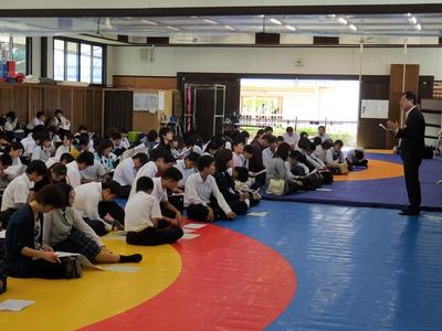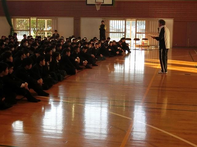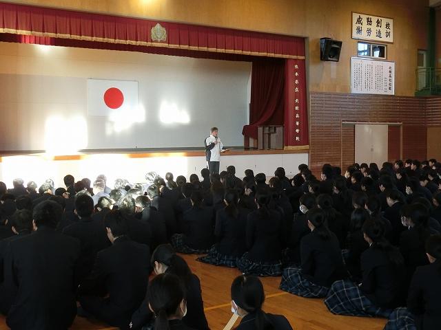 アドバイスを交えて話してくれました。1・2年生は、進路について、まだ先のことと考えず、