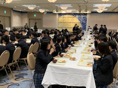 修学旅行2日目の朝です。全員そろって朝食を摂っています。