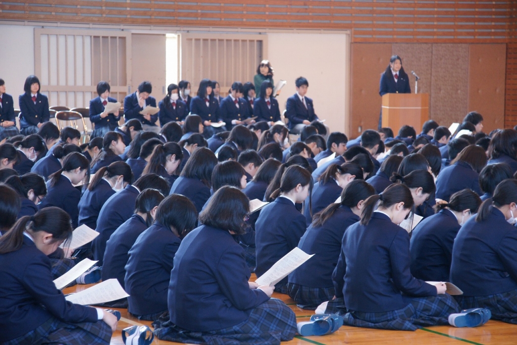 今日は午後より、新入生と2・3年生の対面式、その後「交通安全宣言」