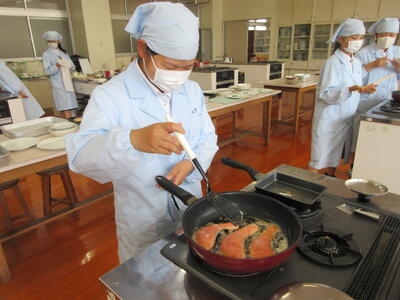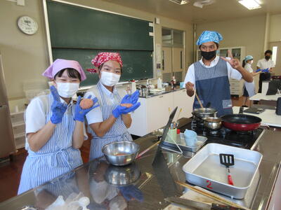 アシュトン先生に教えていただき、アシュトン先生の故郷の味「スパイシーフライドポテト」作りに挑戦しました。みんなで楽しく実習でき、おいしくいただきました。