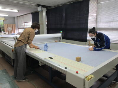 実技試験は「じんべいの製作」です。3時間で左半身を縫いあげます。事前準備、練習、事後作業まで、クラス全員一生懸命に取り組みました。