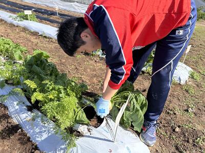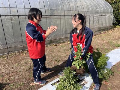 園芸科の先生方にもご協力いただき、「苗は3本、心は1つ!」を合言葉にクラス全員で協力して実習することができました。
