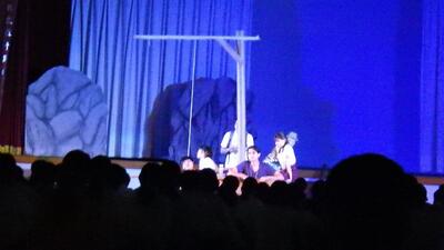 「生きろ!」~十五少年漂流記より~と題して、高校生の現状や悩みをユーモラスに表現され、ミュージカルの要素も取り入れられた明るい元気な舞台でした。