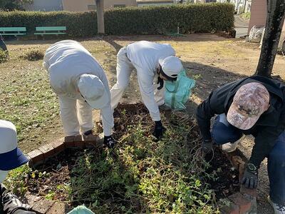ハートフルパークで花壇の入れ替えと公園の清掃を行いました。