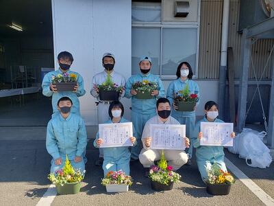 本校からは8名参加しました。参加した生徒達は、放課後の時間などを利用して、花の見る方向や植え方など練習し試行錯誤を繰り返し大会に向けて頑張りました。