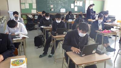 タブレットを使い始めて1ヶ月が過ぎ、授業等でも使用して、朝の健康観察もみんなスムーズにできるようになりました。その後のわずかな時間でも無駄にしないように、テスト勉強に取り組んでいます。