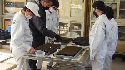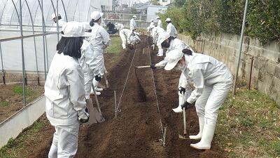 4月からしっかり野菜作りの実習ができるようにいろいろと準備しました。これまでメロンの定植をしたり、スナップエンドの播種をしたり、ジャガイモの植え作けをしました。今日はネギとレタスの育苗のために播種をして、畝立てしたところにトウモロコシを播きました。また圃場の除草してきれいにしました。4月から新2年生頑張れ!