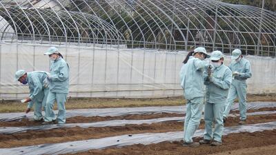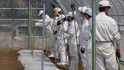 農業と環境の授業で新入生が学習するトマトとキュウリのビニルハウスの準備をしました。