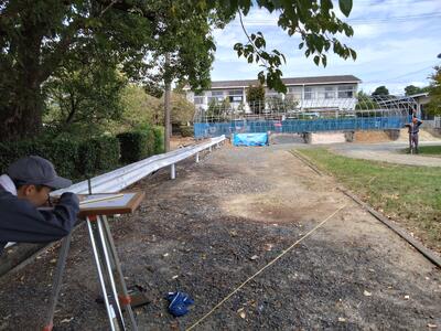本日、造園科1年生は測量の実習を行いました。放射法と呼ばれる測量で、車両練習場を図面に書いていきました。だんだんと出来上がっていく図面の様子にものすごく達成感を感じました!