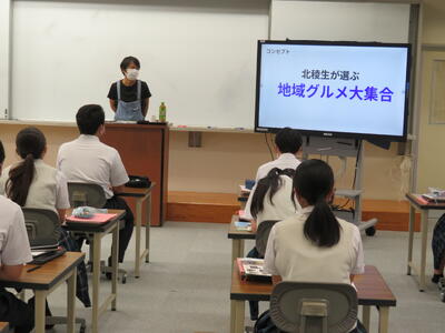 今回の授業では、キッチンカーで出店していただく「オリーブキッチン」から来校していただき、講話をしていただきました。