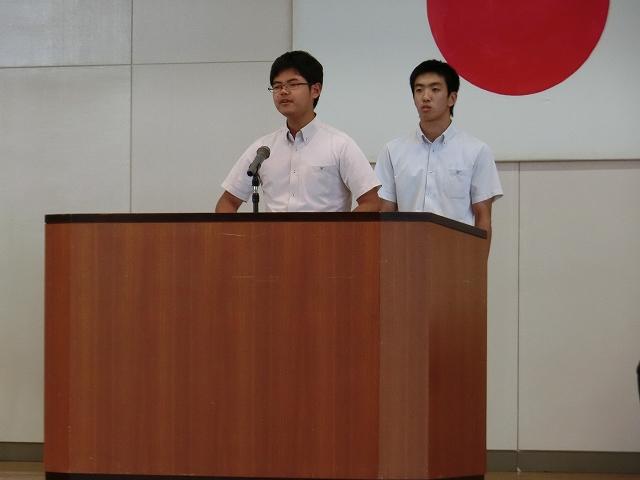 取り組んでいたようです。そして本日は考査後体育館にて高校総体・総文祭に出場する生徒たち
