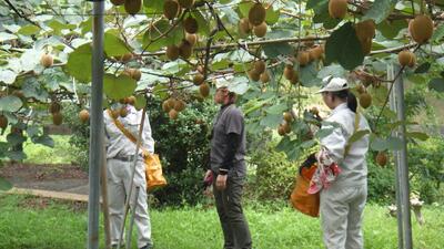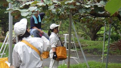 午後は肥のあかり(極早生温州ミカン)とキウイフルーツの摘果をしました。