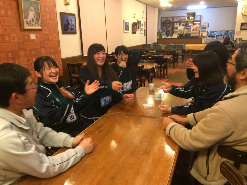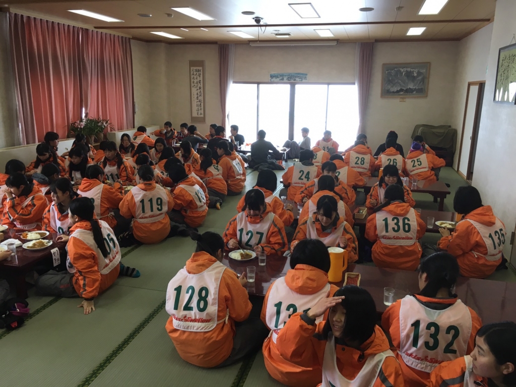 修学旅行日記2日目⑧夕食 投稿日時 : 2017/02/08 学校サイト管理者 2日目の夕食の様子です。夕食後に先生たちと楽しく交流する生徒もいます。どんな話しをしているんでしょう。良い笑顔ですね。スキー研修も本日で終了。明日は東京へ移動します。A01
