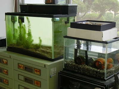 実は生物室には水槽がたくさんあります。