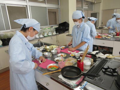 家政科2年が、家庭科食物調理技術検定3級の実技の模擬検定に取り組みました。