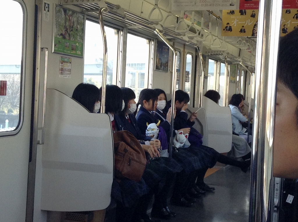 スカイツリーラインの車内です。 切符の買い方からスタートしました。 |