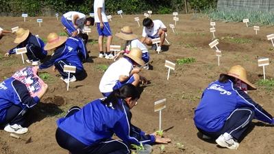 2学期に入り、うね立て・マルチ張りを行い、種まきや定植を行いました。