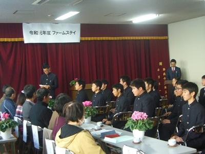 その後、本校から全国大会出場した生徒活動報告等が行われ、最後に3年園芸科学科の南君と造園科の井上君が将来の夢を発表してくれました。