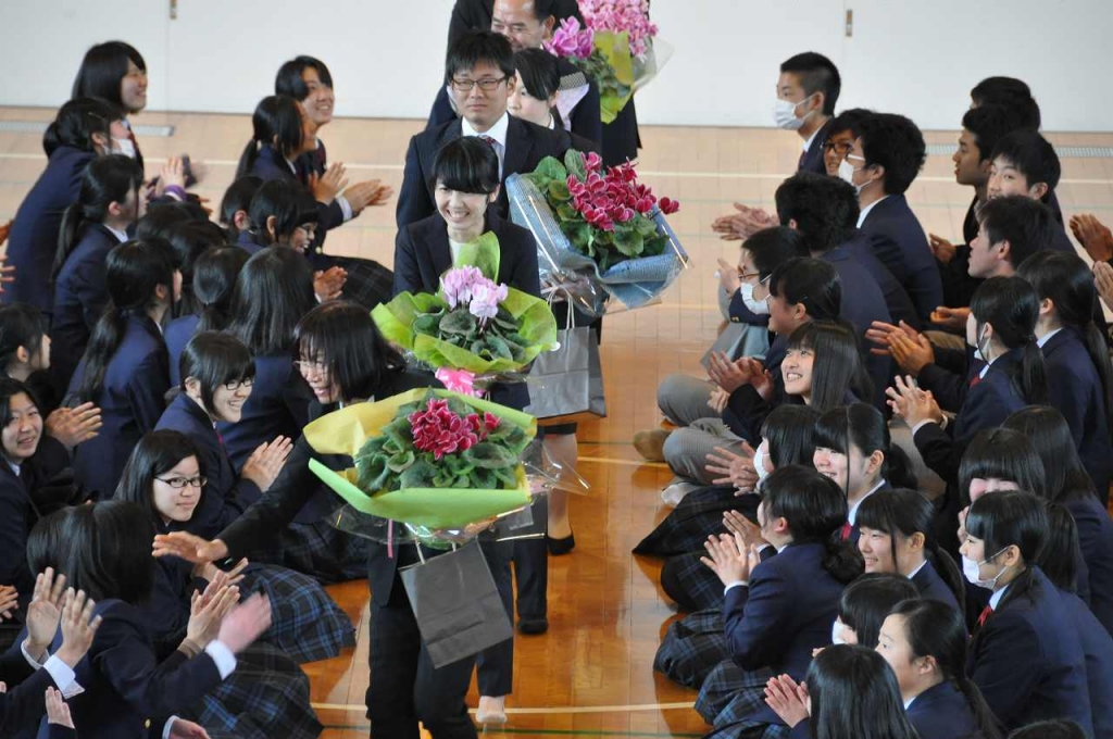 生徒が期待している新担任の発表もありました。それぞれのクラス担任の発表の
